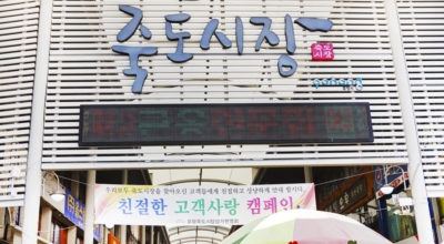 미로처럼 복잡한 죽도시장 한 번 들어가게되면 쉽게 빠져나올 수 없는 인기 여행장소입니다. 그도 그럴것이 맛있는 음식에서부터, 싱싱한 횟거리, 특이한 상점들이 있어 구경하는라 시간 가는 줄 모르는 곳입니다. 과메기, 물회, 고래 고기등 여러가지//종류산물을 맛볼 수 있는 장소로 포항시민뿐만 아니라 사시사철 관광객들로 붐비는 시장이라고 할 수 있답니다.