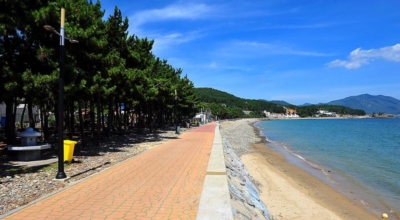 특히 맑은 바닷물과 비교적 조용한 동해바다를 엿볼 수 있는 해수욕장이라고 해요. 또 수심이 얕고 모래사장이 넓어 맘편히 뛰어놀기 훌륭한 곳이라고 하네요. 홍반장처럼 서핑하기 훌륭한 곳 그래서 요즘 서핑의 성지로 불리고 있는 해수욕장으로 거센파도 그리고 해변 뒤로 소나무 숲이 있어 해수욕과 삼림욕을 일제히 즐길 수 있는 관광명소예요.