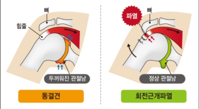 오십견이란 어깨의 통증과 어깨관절의 운동범위 제한을 특징으로 하는 질환으로 특히 50대 이후에 많이 발생함으로 오십견이라 이름이 지어졌으며 어깨관절이 얼어붙었다는 뜻으로 동결견(frozen shoulder)이라고도 합니다. 어깨관절의 운동성이 소실되기 때문에 옷 입기, 머리 감기, 물건 들기 등의 일상생활에 많은 어려움이 유발되며 통증으로 인해 잠을 못자는 경우도 대부분이 발생하게 되어요.