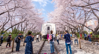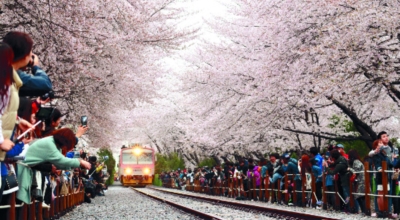 우리나라에서 가봐야 할 수려한 50곳 중 5번째로 소개된 경화역은 현재 기차가 정차하지 않는 역 이지만 군항제 기간에는 벚꽃 테마역으로 벚꽃을 보기위해 많은 관광객들이 몰리고 있습니다. 약 800m의 벚꽃터널이 장관을 이루는 장소로 군항제 기간에는 관광객들의 발길이 끝나지 않는 곳입니다.