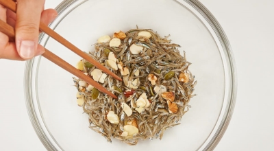 고추장이 고루 섞인 후에는 소금과 참기름을 추가하여 간을 맞춥니다. 재료가 골고루 섞이도록 잘 저어주면 좋습니다. 고추장과 재료가 잘 섞인 후, 중간 불에서 계속 볶아주어요. 멸치가 바싹 익을 때까지 볶아줍니다. 멸치가 바싹 익으면 불을 끄고 팬을 그릇 위에 올려 식힙니다. 식힌 후에는 바로 섭취해도 좋으며, 식혀서 병에 담아 냉장 보관하여 오래 섭취할 수도 있습니다.