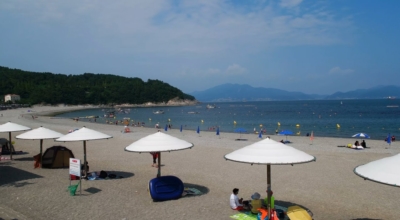 여수엑스포역에서 해안 도로로 직진하면 만성리 검은 모래 해변이 나옵니다. 캠핑하기 좋은 곳이고 여름휴가 철마다 많은 관광객들이 찾는 해변이예요. 넓은 모래사장과 깨끗한 바다 경치를 즐길 수 있는 모래사장이예요.