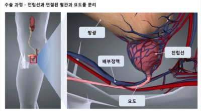 전립선은 남성의 생식 기관 중 한 종류며, 방광 하단에 위치하고, 정액 구성의 일부분을 생성 또는 분비하는 기관입니다. 전립선은 정액의 생성과 배출에 아주 주요한 역할을 하고, 전립선의 가운데 부분에는 소변이 배출되는 요도가 있는데 전립선이 비대해지면 소변 배출이 원활하지 않게 되어요.