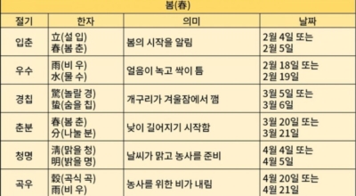 24절기 - 시기와 뜻