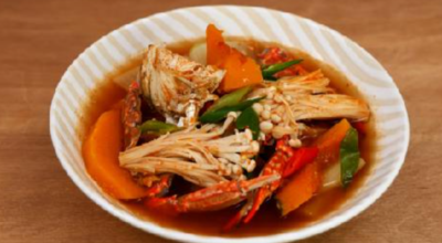 재료 : 꽃게, 국물용 멸치, 다시마, 물, 된장, 단호박, 무, 팽이버섯, 고춧가루, 양파, 다진 마늘, 모시조개, 당근, 풋고추, 홍고추, 고추장, 매실액, 후춧가루, 전복, 새우, 대파, 생강, 미나리, 부추, 쑥갓