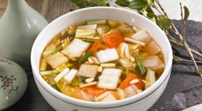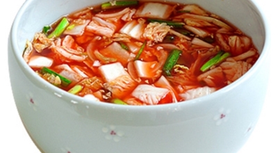 무와 배추를 주재료로 해서 물을 많이 넣은 대표적 국물김치로, 주로 봄에 많이 담그나 상차림에 따라 각 계절별로 이용되기도 해요. 젓갈을 쓰지 않으며 국물에 고춧가루를 그대로 넣지 않고 무에 고춧물을 들이거나 고춧가루를 베보자기에 싸서 국물에 붉은 물을 들입니다. 미나리는 파란색이 살아 있도록 하기 위해서 맛이 든 후에 넣습니다. 예부터 담갔던 물김치로 조선침채, 나복침채라는 이름으로 부르기도 해요.