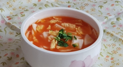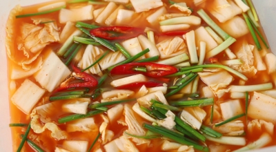 재료 : 사방 2.5cm 크기로 나박썰기한 배추 450g,