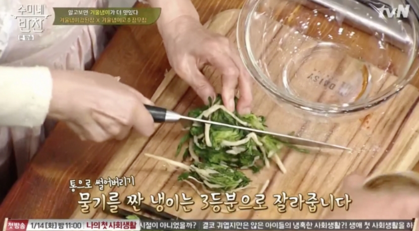 3. 먹기 좋게 냉이를 썰어줘요
